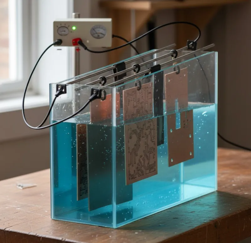 Dieses elektrochemische Polierverfahren glättet Metalloberflächen durch gezielte Abtragung unter Stromfluss – anders als mechanisches Polieren erzeugt es ein mikroreines Spiegel-Finish. Kupfer-, Messing- oder Zinkplatten können in Säurebädern (z. B. Phosphat-, Schwefel- oder Chromsäure) behandelt werden. Die Methode verbessert zudem die Korrosionsbeständigkeit und Reinigungseigenschaften der Oberfläche. Sie ist reproduzierbar und für filigrane Formen gut geeignet – etwa in der Medizintechnik.