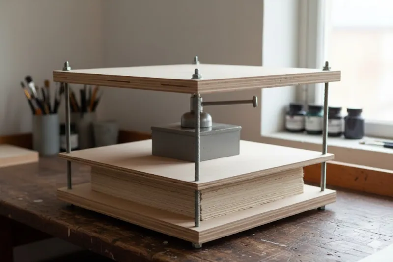 Legen Sie nach dem ersten Pressen neue Papier- oder Moltonlagen zwischen die Papierschichten und pressen nochmals 10 Minuten.
